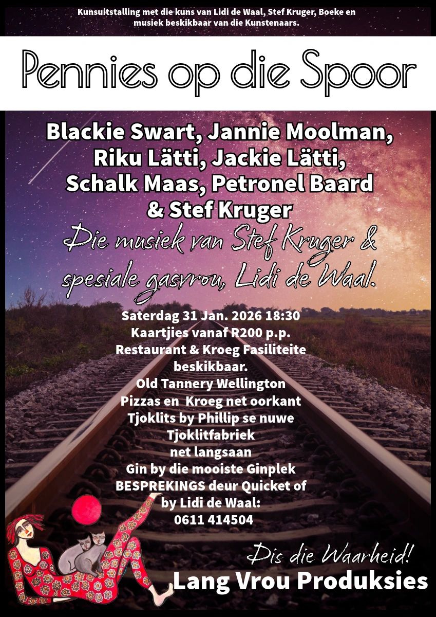 Hierdie prag produksie toer al oor die tien jaar. Petronel en Stef maak lieflike musiek saam en is beskikbaar vir enige fees, huiskonsert of teater. Eerlike, Oorspronklike Afrikaanse Liedjies, musiek en liriek. Kerslig atmosfeer.